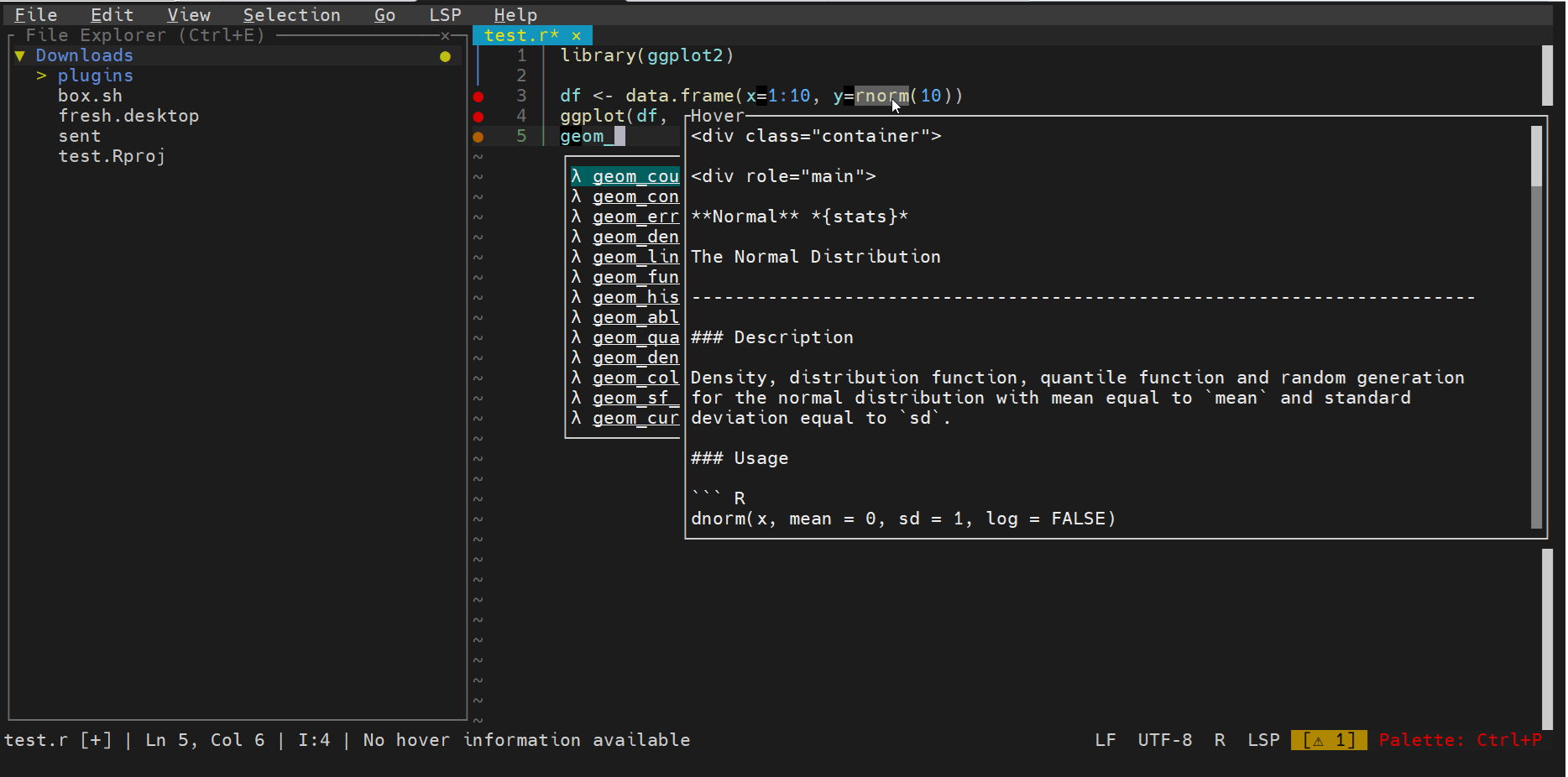 "r": { "command": "R", "args": "--slave -e languageserver::run()", "filetypes": ["r", "R"] } - module load ceuadmin/R ceuadmin/fresh